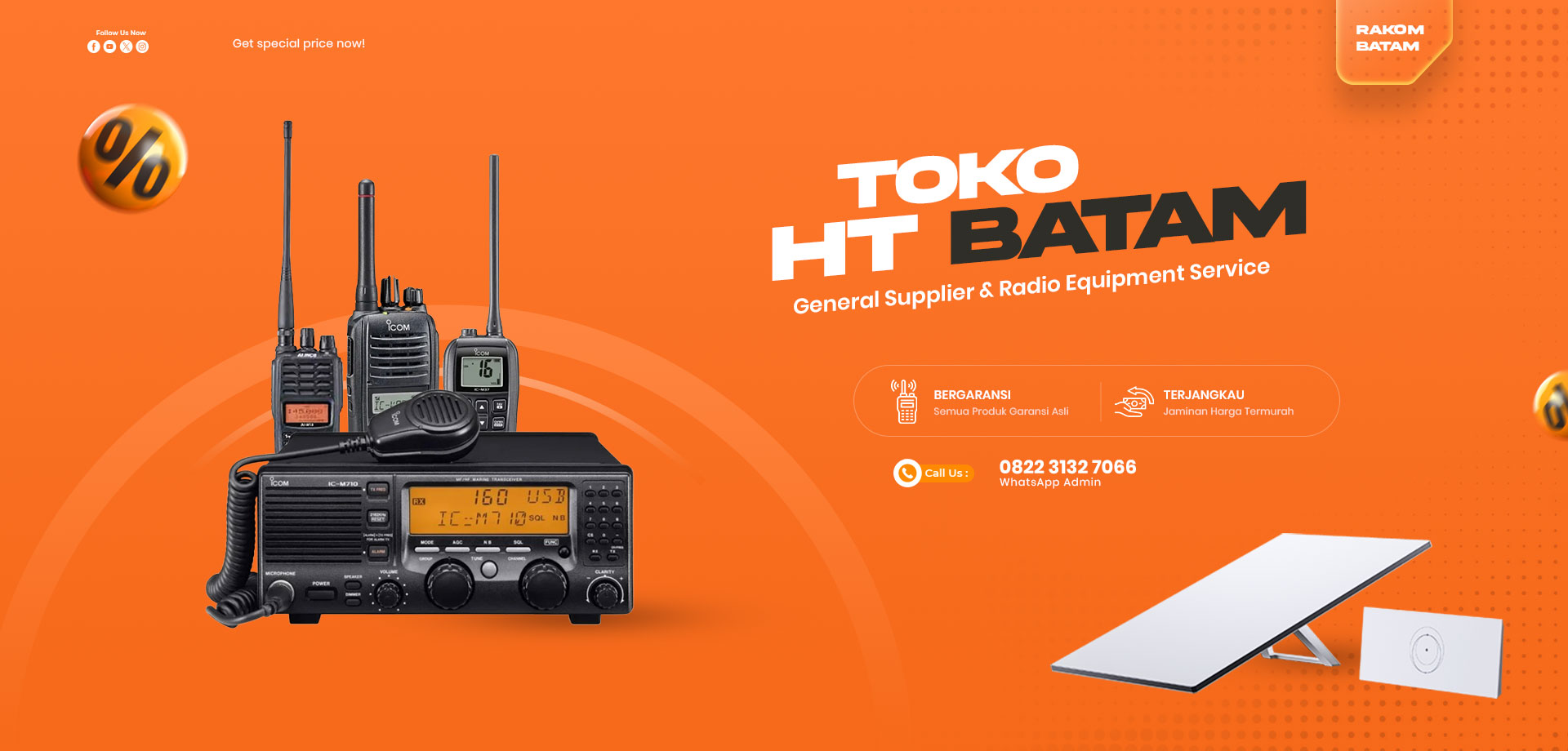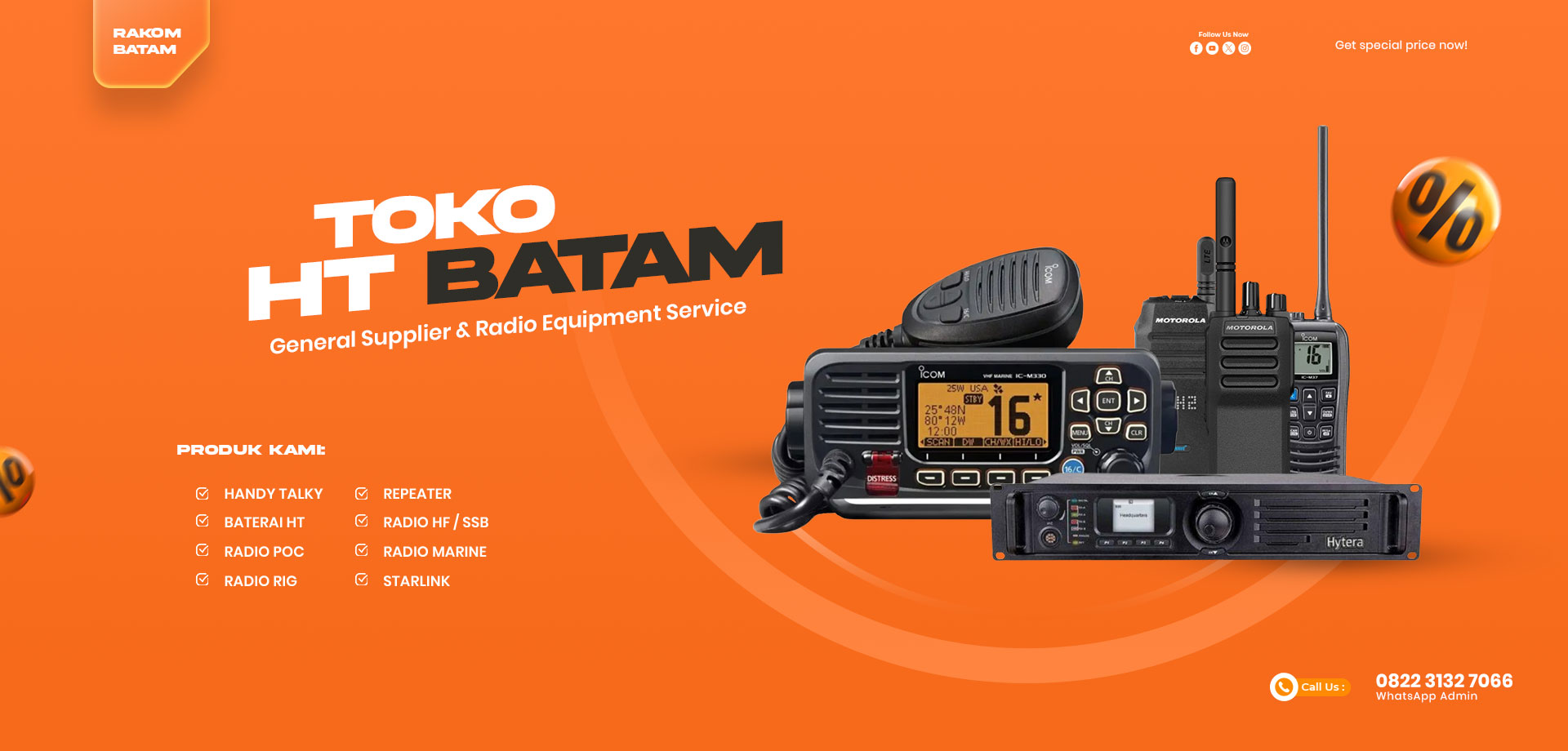 Handy Talky orisinal kami jual di Batam. Sebagai General Supplier & Radio Equipment Service, kami melayani transaksi online maupun offline ke toko kami langsung di Batam, sedangkan pengiriman menjangkau seluruh Indonesia. Berikut adalah Katalog Produk Handy Talky yang kami tawarkan. Dapatkan harga spesial sekarang!